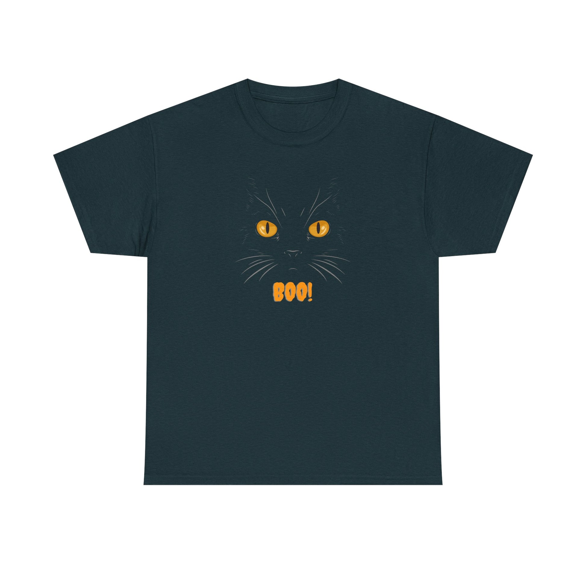 Something mischievous this way comes! This spooky kitty t-shirt is the perfect addition to your Halloween fashionwear. Ideal for Halloween tricksters and cat lovers looking to celebrate the holiday in style.