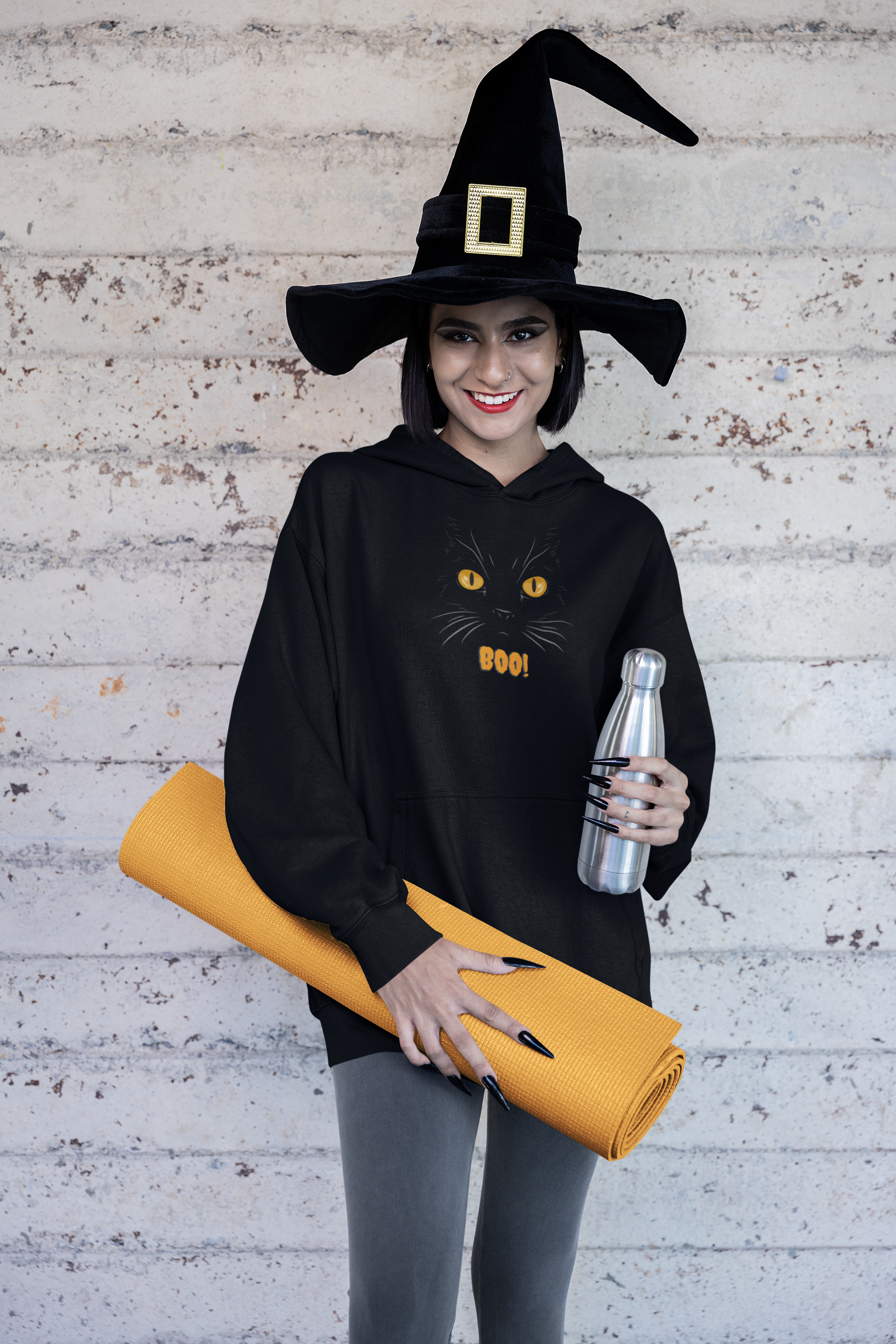BOO! Show off a spooky and mysterious vibe with this sneaky kitty! Perfect for Halloween aficionados and cat lovers. Great for Halloween parties, trick-or-treating, or just lounging at home.